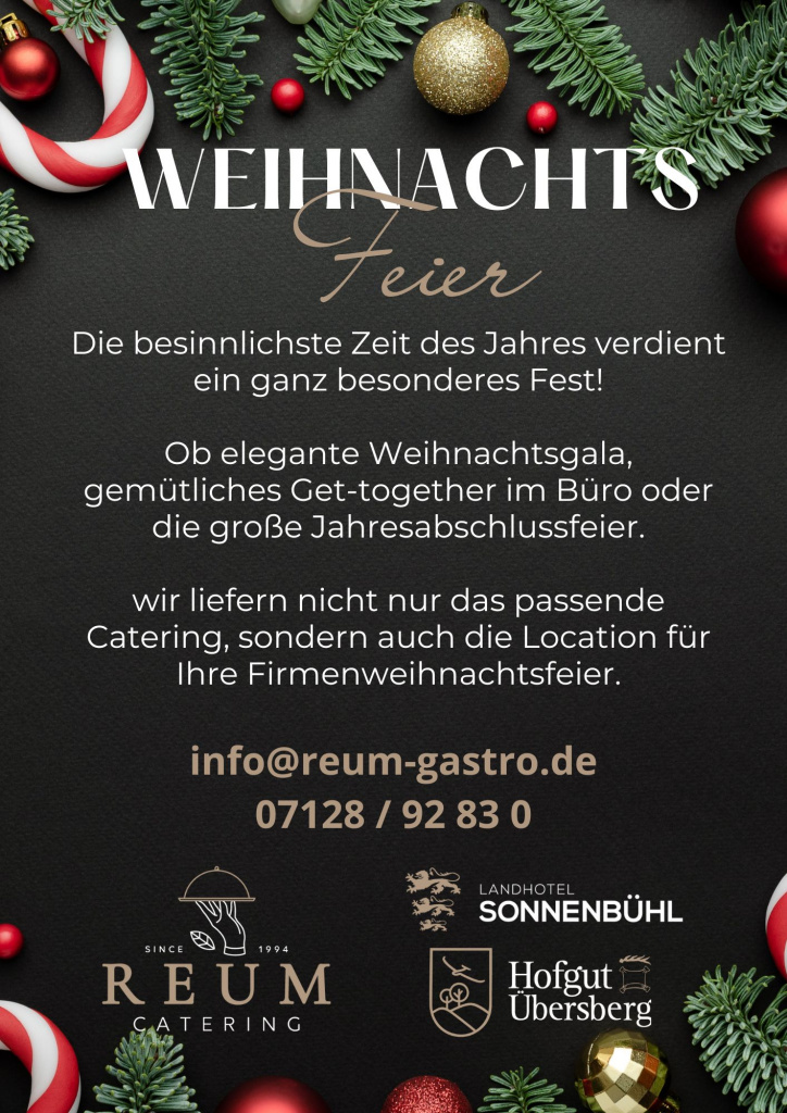 Ob elegante Weihnachtsgala, gemütliches get together im Büro oder die große Jahresabschlussfeier. Wir liefern nicht nur das passende Catering, sondern auch die Location für ihre Firmenweihnachtsfeier.